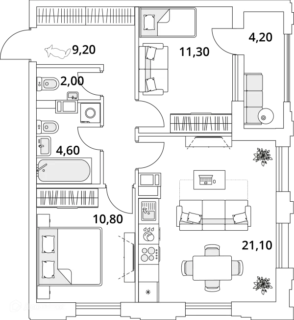 2 комн. квартира в Санкт-Петербурге в ипотеку от 103 829 руб/месяц